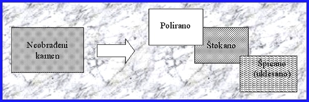 2.Druga faza procesa proizvodnje je obrada kamena. Obradom kamena se mijenja izgled površine kamena, vrši se na različite načine, a neki od njih su poliranje, štokanje i špicanje.