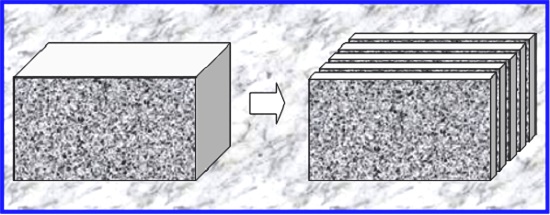 1.Rezanje je prva faza procesa proizvodnje u kojoj se iz kamenih blokova dobivaju gaterirane ploče. Ovisno o vrsti materijala koriste se različiti strojevi za rezanje kamena.